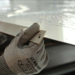 The edges of your steel belt were rounded and polished during production in our works. Damages to the belt edges can occur for example by stuck rollers on the machine. Small, but also bigger notches are potential cracking nuclei and shall therefore be eliminated as soon as possible. It is recommended to regularly check the belt’s edges for obvious visible damage respectively for notches that can be felt with a finger-nail. Any such notches shall be removed by filing or polishing.